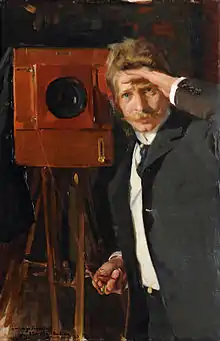 He was born in 1864.[2] Once settled in Spain, he opened a photographic studio at the Madrid's calle del Príncipe.[2] Very appreciated by Queen Mother Maria Christina, he was able to take many full-body portraits of the Spanish royal family and the aristocracy.[3] He became consul of Denmark in 1910.[3] He was, along with Kaulak, one of the best known portrait photographers in Spain by the turn of the 20th century.[4] He died in 1923.[2]
