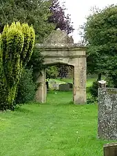 There are three notable monuments in the village. A monolith, made of stone found in nearby Sarsden Wood, was erected in 1891 at the behest of the 3rd Earl of Ducie, commemorates William Smith. A memorial fountain, erected in 1870 at the behest of Julia, Countess of Ducie, commemorates her father, James Haughton Langston. Jennifer Sherwood described this fountain as: "Memorably ugly. A squat, square tower with obelisks and flying buttresses carrying a dumpy spire. The water drips from a rude spout at the side."[7] There is also a parish war memorial.