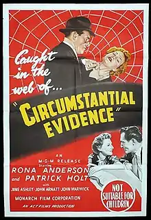 Circumstantial Evidence is a 1952 British crime film directed by Daniel Birt and starring Rona Anderson, Patrick Holt and Frederick Leister.[1] It was made as a supporting feature (B film).