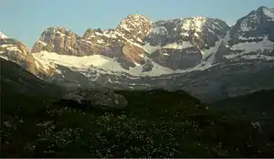 The Cirque d'Estaubé is a cirque in the central Pyrenees in the Pyrenees National Park, forming the frontier between France and Spain. The cirque lies 4 km to the east of its better known neighbour, the Cirque de Gavarnie, which is accessible via the Hourquette d'Alans (2,430 m); the Marboré valley is reached via the Brèche de Tuquerouye (Tuca Arroja) (2,666 m), where there is a small CAF hut.