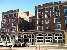 City Hall in Columbia, Missouri, also known as the Daniel Boone Building, was built in 1917. A major addition and restoration was completed in 2011, along with a matching five-story structure.[1] Originally built as a hotel, it has functioned as the city hall of Columbia since 1972 by (respectively) replacing the municipal building across the street.[2][3] The building is a contributing property on the National Register of Historic Places in the Downtown Columbia, Missouri historic district and is at the intersection of Broadway and the Avenue of the Columns. The chambers of the Columbia City Council are on the ground floor.