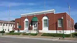 The City Hall of Osceola, Arkansas, is located at 316 West Hale Street, in the city's central business district. It is a single-story red brick building with flat roof, built in 1936 by the Works Progress Administration to house the local post office. The interior lobby space is decorated by a mural entitled "Early Settlers of Osceola", painted in 1939 by Orville Carroll with funding from the Treasury Department's Section of Fine Arts.[2]