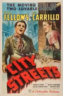 City Streets is a 1938 American melodrama set in New York City. Wheel-chair bound orphan Winnie Brady (Edith Fellows) is taken in by shopkeeper Joe Carmine (Leo Carrillo). An unsuccessful operation on Winnie's legs bankrupts Carmine, who then sells fruit on the streets. Winnie is sent to live in an orphanage, and Carmine is discouraged from continuing his relationship with her. Carmine is so distraught by grief that he slowly begins to die. Winnie is brought to him by local priest Father Ryan (Frank Sheridan), and she finds the strength to stand and walk to his bedside, eventually regaining full use of her legs.[1]