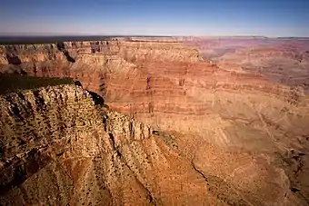 Type of rock | Kaibab Limestone-(prominence), Toroweap Formation, Coconino Sandstone, Hermit Shale, Supai Group, Redwall Limestone, Tonto Group |