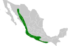 The Colima pygmy owl is found in western Mexico from central Sonora south to Oaxaca, ranging from sea level up to 1,500 m (4,900 ft) in elevation. It inhabits several types of landscapes including thorn, tropical deciduous, lowland tropical evergreen, and the lower parts of humid montane forests. It is also found in coffee plantations.[6]