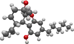 Cannabinoids (/kəˈnæbənɔɪdzˌ ˈkænəbənɔɪdz/) are compounds found in the cannabis plant or synthetic compounds that can interact with the endocannabinoid system.[1][2] The most notable cannabinoid is the phytocannabinoid tetrahydrocannabinol (THC) (Delta-9-THC), the primary intoxicating compound in cannabis.[3][4] Cannabidiol (CBD) is another major constituent of some cannabis plants.[5] At least 113 distinct cannabinoids have been isolated from cannabis.[6]