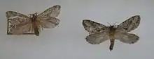 The conifer swift moth (Korscheltellus gracilis) is a swift moth considered a forest pest in eastern and central North America, from Canada south to North Carolina. Larvae feed primarily on roots of evergreen trees, and are weakly polyphagous, able to survive on deciduous trees (e.g. birches, Betula) but preferring balsam fir and red spruce. They penetrate bark, but lesions on roots are shallow. These wounds may, however, provide easy entry for pathogenic fungi and nematodes. K. gracilis has been shown to reduce survival on saplings, but adult trees have been found with more than 30 feeding scars on their roots. But trees that are weakened by air pollution or changes in soil chemistry may invite K. gracilis infestation. Adults can be found in woody areas between June and August. They are cryptically colored, but are active for 20–40 minutes each dawn and twilight, and occasionally come to light. In the conifer swift moth, courtship, mating, and egg laying occur during evening hours; only oviposition occurs in the morning. They are Exoporia, and females scatter eggs while in flight. It takes two years for the larvae to mature, so populations tend towards two-year cycles. Females emit pheromones to attract males, from organs on their hind wings.