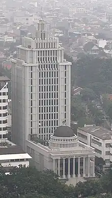 The Constitutional Court of the Republic of Indonesia (Indonesian: Mahkamah Konstitusi Republik Indonesia) is one of the apex courts in Indonesia along with the Indonesian Supreme Court. Its primary role is reviewing the constitutionality of Acts (undang-undang). It also has other functions, including resolving disputes over the powers of state institutions, settling disputes over the results of general elections, deciding on the dissolution of political parties, and supervising impeachment.[1] The last two functions have never been exercised by the Court.[2]