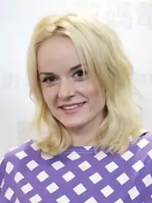 - ↑ Schroeder, Charlie (3 February 2014). "This blond and blue-eyed singer wows Hong Kongers with her flawless Cantopop". Public Radio International. Retrieved 24 September 2015.