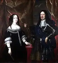 Ferdinando beseeched Louis XIV to do something about his daughter-in-law's behaviour; he sent the Comte de Saint-Mesme. Marguerite Louise wanted to return to France, and Saint-Mesme sympathised with this, as did much of the French court, so he left without finding a solution to the heir's domestic disharmony, incensing both Ferdinando and Louis XIV.[16][17] She humiliated Cosimo at every chance she got: she insisted on employing French cooks, as she feared the Medici would poison her. In September 1664 Marguerite Louise abandoned her apartments in the Pitti, the grand ducal palace. Cosimo moved her into Villa Lapeggi. Here, she was watched by forty soldiers, and six courtiers, appointed by Cosimo, had to follow her everywhere.[18] The next year she reconciled with the grand ducal family, and gave birth to Anna Maria Luisa, future Electress Palatine, in August 1667. The delicate rapprochement that existed between Marguerite Louise and the rest of the family collapsed after Anna Maria Luisa's birth, when Marguerite Louise caught smallpox and decided to blame Cosimo for all her problems.[19]