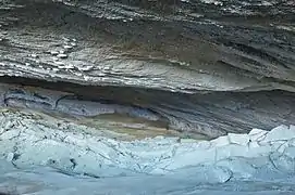 Diverse elements of human habitation are found[4] at Cueva del Milodón including fire-fractured rock, lithic tools and human remains. Human habitation at Cueva del Milodón is dated as early as 6000 BC.[5]