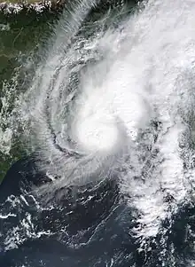 Very Severe Cyclonic Storm Hamoon[lower-alpha 1] (/hɑːˈmun/) was a relatively strong tropical cyclone that made landfall in Bangladesh. The fourth named storm of the 2023 North Indian Ocean cyclone season, Hamoon formed from a low-pressure area over the west-central Bay of Bengal on 21 October 2023. It suddenly strengthened, peaking at Category 2-equivalent intensity with winds of 155 km/h (100 mph) in terms of 1-minute sustained winds. Making landfall, Hamoon rapidly weakened once inland and bringing severe rainfall in Bangladesh.