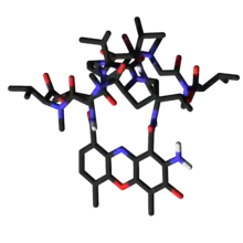 Dactinomycin, also known as actinomycin D, is a chemotherapy medication used to treat a number of types of cancer.[2] This includes Wilms tumor, rhabdomyosarcoma, Ewing's sarcoma, trophoblastic neoplasm, testicular cancer, and certain types of ovarian cancer.[2] It is given by injection into a vein.[2]