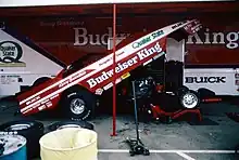 Armstrong continued as Bernstein's crew chief in 1987 and they used a controversial Buick LeSabre body.[3] Bernstein won a record-tying seven national events and achieved their third consecutive Winston points title.[3] The Buick had the first 5.3 second run at the Winston All-stars race with a 5.39-second e.t.[3] Bernstein tied another Don Prudhomme Funny Car record when he won his fourth straight championship in 1988.[3] His Buick Reatta made six finals, winning three times, achieved six low e.t., and qualified number one five times. In 1989, Bernstein finished third in Funny Car before moving up into the Top Fuel class in the following season.[3]