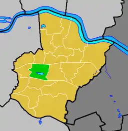 Danson Park ward (green) within the London Borough of Bexley (yellow)