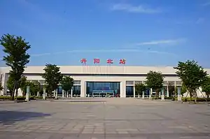The Danyang North railway station (Simplified Chinese: 丹阳北站) is a high-speed railway station in Danyang, Jiangsu, China. It is served by the Jinghu High-Speed Railway.[1] The station is at the northern end of the Danyang–Kunshan Grand Bridge the longest bridge in the world.