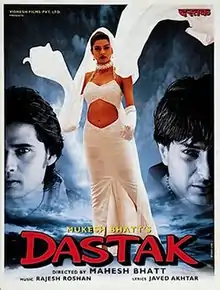 Dastak (transl. Knock) is a 1996 Indian Hindi language Psychological thriller film edited and directed by Mahesh Bhatt, produced by Mukesh Bhatt with a script written by Vikram Bhatt starring Sushmita Sen in her debut film co-starring Mukul Dev with Sharad Kapoor as the villain.
