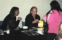 Carradine co-produced a full-length documentary about luthier Stuart Mossman, which has been identified as the actor's last film appearance.[80] The Legend of Stuart Mossman: A Modern Stradivari, directed by Barry Brown, premiered at the Santa Barbara International Film Festival, in February 2010.[81] It featured David, Keith, and Robert Carradine performing their music on Mossman guitars. Mossman had appeared with Carradine in Cloud Dancer (1980), which Brown also directed, and in The Long Riders.[80] On the small screen, Carradine appeared in a guest spot on the television series Mental that was broadcast just days after his death. On October 3, 2009, Celebrity Ghost Stories premiered on the Biography Channel with an interview of Carradine discussing his belief that his closet was haunted by his wife's deceased previous husband. The segment, which was described as "eerie", was filmed four months before his own death.[82]