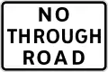 California uses the phrase Not a Through Street or Not a Through Road to mark roads or road systems that end in culs-de-sac. More recently, No Outlet has been shown on some signs as well (an example being Meyers Avenue south of Eureka Street in the Pine Hills area).