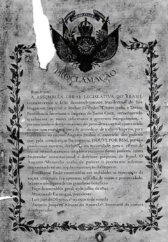 Brazilians! The nation's hopes have become reality; a new era has dawned, one of unity and prosperity. Let us be worthy of such a great benefit.[14]