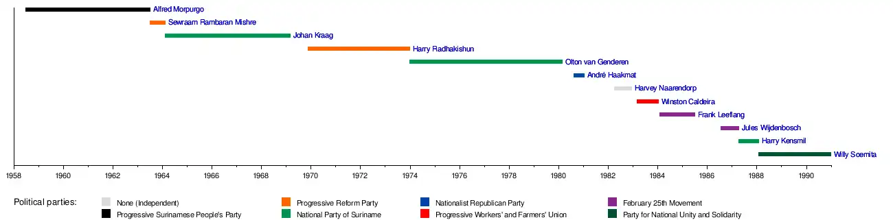 - ↑ "AROUND THE WORLD; New Civilian Cabinet Installed in Suriname". The New York Times. 1 April 1982. Retrieved 15 December 2020.
