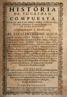 Diego López de Cogolludo (Alcalá de Henares 1613 – New Spain 1665) was a Spanish Franciscan historian of Yucatán.