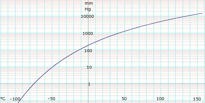 | T in °C | –74.3 | –48.1 | –27.7 | –11.5 | 17.9 | 34.6 | 56.0 | 90.0 | 122.0 | 156.0 | — | — | |