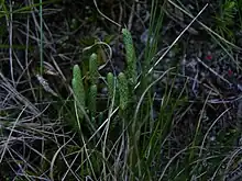 Diphasiastrum × issleri is a hybrid between D. alpinum and D. complanatum. Originally placed in a broadly circumscribed Lycopodium as a race of L. alpinum, it was transferred to the segregate genus Diphasiastrum and raised to species level by Holub in 1975.[2] In the past, it has been treated as a subspecies of D. complanatum. American material was once believed to be a hybrid between D. alpinum and D. tristachyum, but the offspring of those parents is properly known as D. × oellgaardii, which has not yet been found in North America.[3]