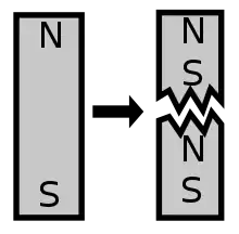 In particle physics, a magnetic monopole is a hypothetical elementary particle that is an isolated magnet with only one magnetic pole (a north pole without a south pole or vice versa).[1][2] A magnetic monopole would have a net north or south "magnetic charge". Modern interest in the concept stems from particle theories, notably the grand unified and superstring theories, which predict their existence.[3][4] The known elementary particles that have electric charge are electric monopoles.