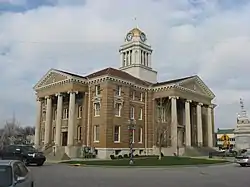 Dubois County Courthouse is a historic courthouse located at Jasper, Dubois County, Indiana. It was designed by the architectural firm Milburn & Heister and built between 1909 and 1911. It is a three-story, Classical Revival style reinforced concrete and masonry building. It features a cupola that rises 100 feet high and pedimented porticos with Ionic order columns. Also on the property is the contributing Soldiers and Sailors Monument erected in 1894.[2]: 5, 9