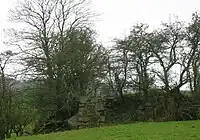 Dundonald Woods (NS363343) are one of the most extensive areas of elm-dominated woodlands in Ayrshire. Ash, oak and sycamore are also abundant; much of the policies are composed of derelict-coppiced-type growth from trees felled in the Second World War. Some conifer plantations are present. Wetland habitats are also present, including the Collennan Reservoir, springs and a eutrophic loch, contributing to the high biodiversity of the site. Dog's Mercury, Wood Melick, Broad-leaved Helleborine, and Giant Bellflower are amongst the significant plants present.[8]
