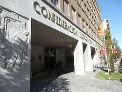 On February 4, 1933, the competition for preliminary projects for the CHE headquarters was announced. On April 13, 1933, the jury decided and the work was awarded to Regino Borobio Ojeda and José Borobio Ojeda. Work began in April 1936 and was completed in December 1946.[7] The building is functional. It is located at Paseo de Sagasta, 24–26.