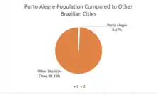 The population of Porto Alegre is 1,483,771.[7] As a percentage of the total population of Brazil (210, 147, 125[8]), the people of Porto Alegre make up approximately 0.67% of the population. (As shown in figure 1).