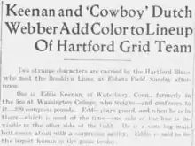 - ↑ "Keenan and 'Cowboy' Dutch Webber Add Color to Lineup Of Hartford Grid Team". The Standard Union. October 8, 1926. p. 11 – via Newspapers.com.