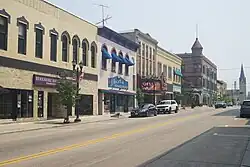 The district is Manitowoc's old downtown, with many first stories remodeled, but many historic upper stories intact.[3] Interesting structures include the 1853 Schultz house,[4] the 1857 Italianate-styled Berner's Hardware Store,[5] the 1865/1878 Fricke/Schreihart Brewery,[6] the 1875/1880 Queen Anne Wernecke Bakery,[7] the 3-story 1890 Queen Anne I.O.O.F. Hall,[8] the 1895 High Victorian Italianate Jarchow Blacksmith shop,[9] the 1901 Neoclassical German-American Bank,[10] the 1901 Beaux Arts Schuette Brothers Department Store,[11] the 1906 Christ H. Tegen-designed Beaux-Arts-styled Manitowoc County Courthouse and the 1927 Mediterranean-flavored Hotel Manitowoc.[12]