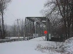 Eikenberry Bridge, also known as Bridge 1–19, Lost Bridge, and Miami County Bridge #28, is a historic Pratt Through Truss bridge located in Richland Township, Miami County, Indiana. It was built about 1920 by the Rochester Bridge Company and spans the Eel River. It is a two-span metal truss bridge with an overall length of 227 feet.[2]: 2–3