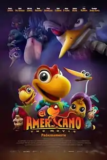 El Americano: The Movie (also known as Americano[6]) is a 2016 3D Mexican-American animated family film produced by Animex Producciones, Olmos Productions, and Phil Roman Entertainment, and is directed by Ricardo Arnaiz and ex-Disney animator, Mike Kunkel.[9][10][11][12] The film features an ensemble voice cast of mostly Hispanic American and Mexican actors led by Rico Rodriguez, Edward James Olmos, Cheech Marin, Kate del Castillo, Paul Rodriguez, Gabriel Iglesias, Erik Estrada, and Lisa Kudrow.[13][14][15]