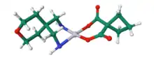 - ↑ Bitha P, Carvajal SG, Citarella RV, Child RG, Delos Santos EF, Dunne TS, et al. (August 1989). "Water-soluble third generation antitumor platinum complexes, [2,2-bis (aminomethyl)-1,3-propanediol-N,N']-[1,1-cyclobutanedicarboxylato (2-)-O,O']platinum(II) and [1,1-cyclobutanedicarboxylato(2-)-O,O'] [tetrahydro-4H-pyran-4,4-dimethanamine-N,N']platinum(II)". Journal of Medicinal Chemistry. American Chemical Society (ACS). 32 (8): 2015–2020. doi:10.1021/jm00128a052. PMID 2754720.