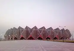 Shortly after Azerbaijan's victory at the 2011 edition, officials announced that a new 23,000-seat concert venue was to be built near National Flag Square in Baku, as a potential venue for the event.[5][6] Three days later, other venue options were revealed by organisers, such as the 37,000-seat Tofiq Bahramov Stadium and the Heydar Aliyev Sports and Exhibition Complex.[7] On 2 August 2011, Alpine Bau Deutschland AG was awarded the contract to construct the Baku Crystal Hall. Preparations for construction began in the area shortly after the announcement.[8] Even though the full cost of the contract was not named, the government allocated 6 million AZN for the construction of the venue.[9]
