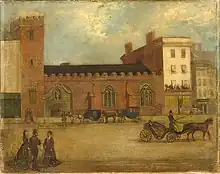 In the city centre, much of Bedford Circus, the top of High Street, and adjacent parts of Sidwell Street and Paris Street were destroyed. A second area at the top of Fore Street and much of South Street was also obliterated.[6] Between these two areas, the Cathedral was only hit by one high explosive bomb, which demolished St James's Chapel on its southern side.[7] The City Library, with over a million documents and books was destroyed, as was the Vicars Choral College.