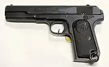 The FN Model 1903 (M1903, FN Mle 1903), or Browning No.2 is a semi-automatic pistol designed by John Browning and manufactured by Belgian arms manufacturer Fabrique Nationale (FN). It was introduced in 1903 and fired the 9×20mmSR Browning Long cartridge. It should not be confused with the US-made Colt Model 1903 Pocket Hammerless (in .32 ACP), nor with the Colt Model 1903 Pocket Hammer (in .38 ACP). The FN Model 1903 is based on the same mechanical design as the Colt Model 1903 Pocket Hammerless, which Browning sold to both companies (and others as well), but enlarged to handle the more powerful 9mm Browning Long cartridge. The M1903's reliability, accuracy, light weight, and quick reloading made it a popular service pistol for many police forces and militaries. The pistol was initially introduced by FN as the Browning Modèle de Guerre (Browning War Model) or Browning Grand Modèle (Browning Large Model).[6]