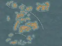 Fantasy cartography, fictional map-making, or geofiction is a type of map design that visually presents an imaginary world or concept, or represents a real-world geography in a fantastic style.[1] Fantasy cartography usually manifests from worldbuilding and often corresponds to narratives within the fantasy and science fiction genres. Stefan Ekman says that, "a [regular] map re-presents what is already there; a fictional map is often primary – to create the map means, largely, to create the world of the map."[2]