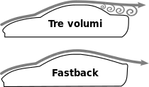 A fastback is an automotive styling feature, defined by the rear of the car having a single slope from the roof to the tail.[3][4] The kammback is a type of fastback style.