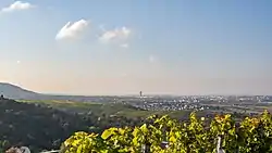 Fellbach is located south of the Neckar basin on a plateau between the Neckar and Rems valley at the northern foothills of the Schurwald. The highest points are the Kappelberg (Baden-Württemberg) (469.0 m) and the Kernen (hill) (513.2 m). The metropolitan area extends north into the so-called "Schmidener Feld".