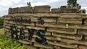 ![]() Limestone endpost with leaner, an icon of Kansas | |