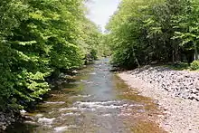 Public recreation activities include canoeing, birdwatching, and fishing. The creek is known for its trout population, which includes brook, brown and rainbow trout; it also contains many other species of fish.[4] Northern hardwood trees and ruffed grouse live in the surrounding area.
