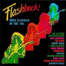 Flashback! Rock Classics of the '70s is a charity album. This compilation is filled with the names of artists who rarely agree to allow their songs to appear on compilations. Released through Realm Records, it benefits the T.J. Martell Foundation, which contributes money to cancer and AIDS research. These tracks come from five of the six major labels of the day, BMG being the exception.