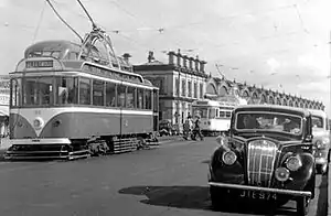 ![]() Trams in front of the second Fleetwood station on Queen's Terrace in 1959 | |