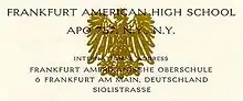 Frankfurt American High School (FAHS) was a Department of Defense Dependents Schools (DoDDS) system school located on what was once known as the Abrams Complex in Frankfurt, Germany. One of DoDDS original six high schools in Germany, the school served the children of American military, government and civilian personnel from 1946 until its closing in 1995.[1] Originally known as the "Maroon Raiders", the "Eagle" was adopted as the school's mascot during the 1948–49 school year. The school's colors are black and gold. The motto is "Eagles Über Alles."