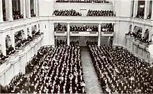 During the Great Depression of 1931/32, the Museums-Gesellschaft also got into financial difficulties, especially since the Frankfurter Rundfunk-Symphonie-Orchester, which had been under the direction of Hans Rosbaud since 1929, had become a competitor which had poached numerous subscribers from the museum.[4]